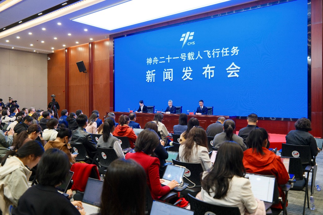 Пресконференция за пилотираната космическа мисия Shenzhou XXI се провежда в сателитния център Jiuquan в Северозападен Китай на 30 октомври 2025 г. [Photo/Xinhua]