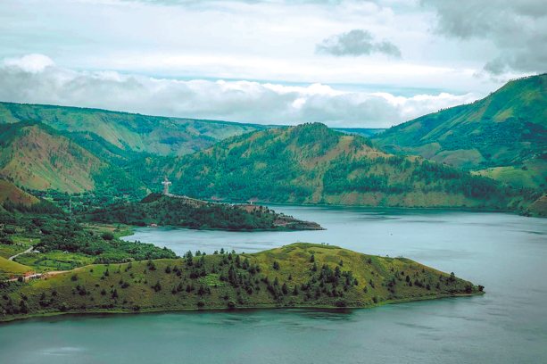 Спокойните води на езерото Тоба, най-голямото вулканично езеро в Индонезия, обградено от тучни хълмове. КИТАЙ ДЕЙЛИ