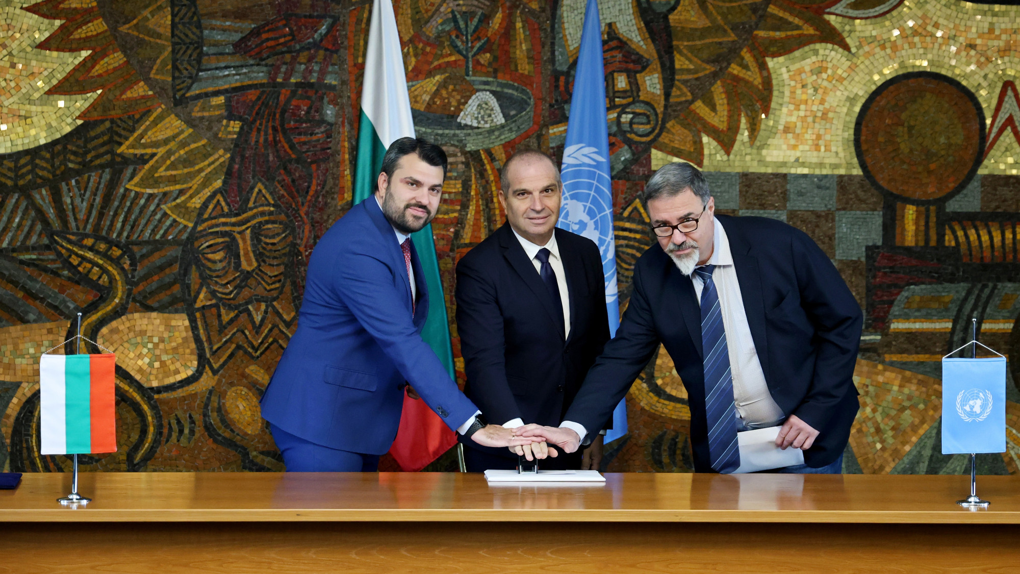 Гроздан Караджов изрази признателност към художника Симона Кожухарова за елегантното и символично оформление на изданието, което пресъздава именно онези ценности, които България споделя със световната организация вече седем десетилетия.